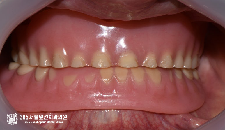 안녕하세요 365서울앞선치과입니다. 오늘은 연세가 지긋하신 환자분 치료 증례를 소개해볼게요. 기존에 사용해오던 틀니가 마모가 심해서 식사가 불가능하다는 불편감을 호소하셨습니다. 구강내를 정밀하게 진단해봅니다.