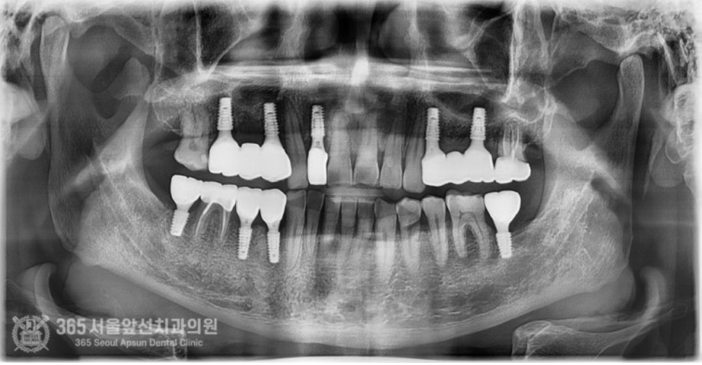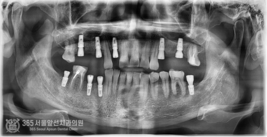 안녕하세요. 석바위시장치과 365서울앞선치과의원입니다. 오늘은 전체 임플란트 치료증례를 살펴보겠습니다. 예전에 치료해드렸던 환자분께서 소개해주신 환자분이십니다. 빵도 사다주시고 참 감사했던분이신데요 ㅎㅎ 촬영일시 : 2024.08.03. 처음 내원당시 상태는 이가 많이 없어서 제대로 밥을 먹을 수가 없어요. 잘 웃지도 못하구요. 이가 많이 없으셔서 식사도 불편하고 특히 사회생활에 불편감이 있으시다고 하셨습니다. 진단과정을 거쳐 발치할 치아는 발치하고 살려서 쓸 수 있는 치아는 살려쓰는 것으로 계획하여 치료를 진행하였구요. 촬영일시 : 2024.10.11. 임플란트가 모두 식립된 상태입니다. 치아가 없는 자리와 치아를 발치한 자리에는 임플란트를 식립하여 튼튼하게 보철물을 제작해드렸구요. 살려서 쓸 수 있는 치아는 신경치료 후 크라운으로 보강하여 마무리해드렸습니다 ㅎㅎ 치료기간은 대략 3~4개월 정도 걸렸습니다. 촬영일시 : 2025.01.12. 치료 종결 후 엑스레이 사진입니다. 임플란트가 반듯하게 잘 식립되었네요. 치아도 기존 치아색상과 조화를 이룰수있게 자연스러운 색조로 제작해드렸습니다ㅎㅎ 아주 만족하셨어요. 임플란트 치료하고 나서 인상이 확 바뀌었다는 얘기를 많이 들었어요. 이런 말씀을 해주실때마다 의사로서 뿌듯함을 느낍니다 ^^ 오늘은 소문을 듣고 내원하신 환자분을 전체 임플란트 치료를 통해 만족시켜드린 증례를 소개해봤습니다. 앞으로도 좋은 증례로 찾아뵙겠습니다. 석바위시장치과 365서울앞선치과의원이었습니다. 감사합니다. [ 치료기간: 2024년 8월3일 ~ 2025년 1월 12일 ] ※ 365서울앞선치과의원의 모든 포스팅은 각 진료과 의료진이 직접 작성합니다. 365서울앞선치과의원 블로그의 임상 케이스 게시물은 환자분께 의학적으로 정확하고 상세한 정보를 드리기 위해 각 진료과 의료진이 직접 작성하며, 모든 증례 사진은 본원 의료진이 직접 시술한 증례를 촬영한 것으로, 의료법 제23조, 제56조에 의거하며 환자분의 동의를 얻어 포스팅에 사용하였습니다. 또한 해당 케이스는 본 환자분의 치료 결과이며, 환자 상태에 따라 치료의 결과는 달라질 수 있습니다. |