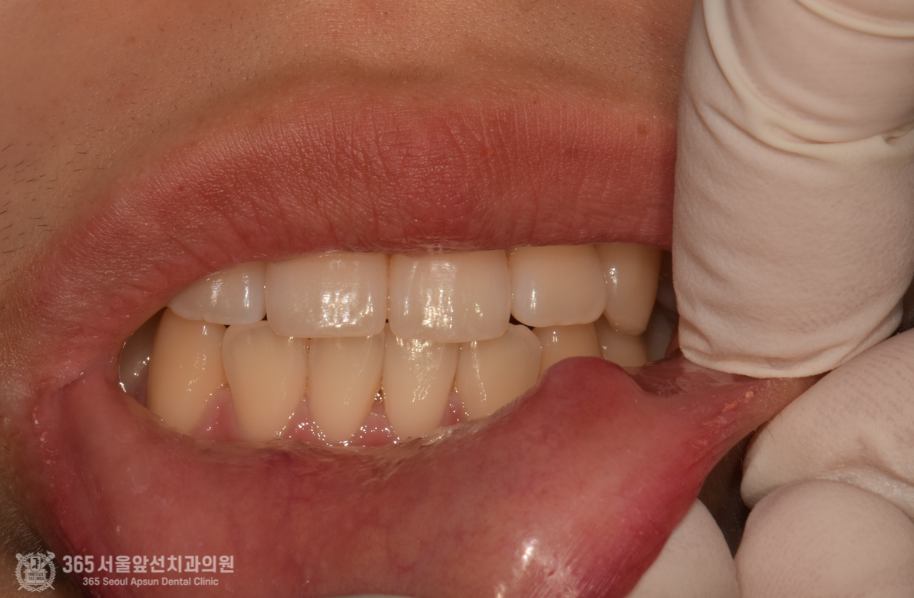 오늘 소개해드릴 증례 환자분은 입술에 점액낭종(mucocele)이 생겨서 불편감을 호소하여 내원하셨던 환자분입니다. 점액낭종이란 어떤 원인에 의해서 침샘 도관이 막히고, 그로인해 분비물이 고여서 생기는 일종의 물혹이라고 이해하시면 쉽겠습니다. ㅎㅎ 촬영일시 : 2024.06.10. 촬영일시 : 2024.06.10. 아랫 입술에 볼록하게 솟은 점액낭종이 관찰됩니다. 터트릴 경우 높은 확률로 재발될 수 있기에 원인이 되는 타액선(침샘)을 포함하여 절제 해내는 것이 치료의 원칙이 되겠습니다. 촬영일시 : 2024.06.10. 조심스럽게 접근하여 원인이 되는 소타액선을 제거합니다. 촬영일시 : 2024.06.17. 대략 1주일 후 회복상태이며 아직까지는 약간의 붓기와 멍이 잔존한 것이 관찰됩니다. 촬영일시 : 2024.06.23. 대략 2주후 모습이며 깨끗하게 제거된 것이 관찰됩니다. 오늘은 입술부위에 종종 생기는 점액낭종(mucocele)에 대해서 알아보았습니다. 점액낭종 자체는 간단하게 제거가 가능하므로 너무 걱정하실 필요는 없겠습니다 ㅎㅎ 그럼 더 좋은 증례와 지식공유로 다시 찾아뵙겠습니다. 이상 미추홀구치과 365서울앞선치과였습니다! [ 치료기간: 2024년 6월10일 ~ 2024년 6월 23일 ] ※ 365서울앞선치과의원의 모든 포스팅은 각 진료과 의료진이 직접 작성합니다. 365서울앞선치과의원 블로그의 임상 케이스 게시물은 환자분께 의학적으로 정확하고 상세한 정보를 드리기 위해 각 진료과 의료진이 직접 작성하며, 모든 증례 사진은 본원 의료진이 직접 시술한 증례를 촬영한 것으로, 의료법 제23조, 제56조에 의거하며 환자분의 동의를 얻어 포스팅에 사용하였습니다. 또한 해당 케이스는 본 환자분의 치료 결과이며, 환자 상태에 따라 치료의 결과는 달라질 수 있습니다. |