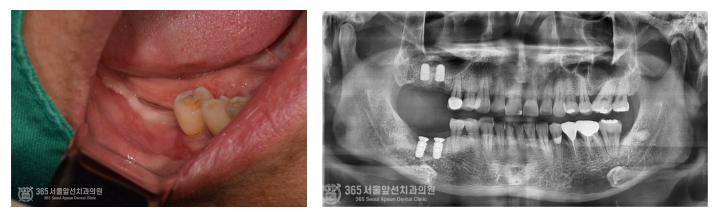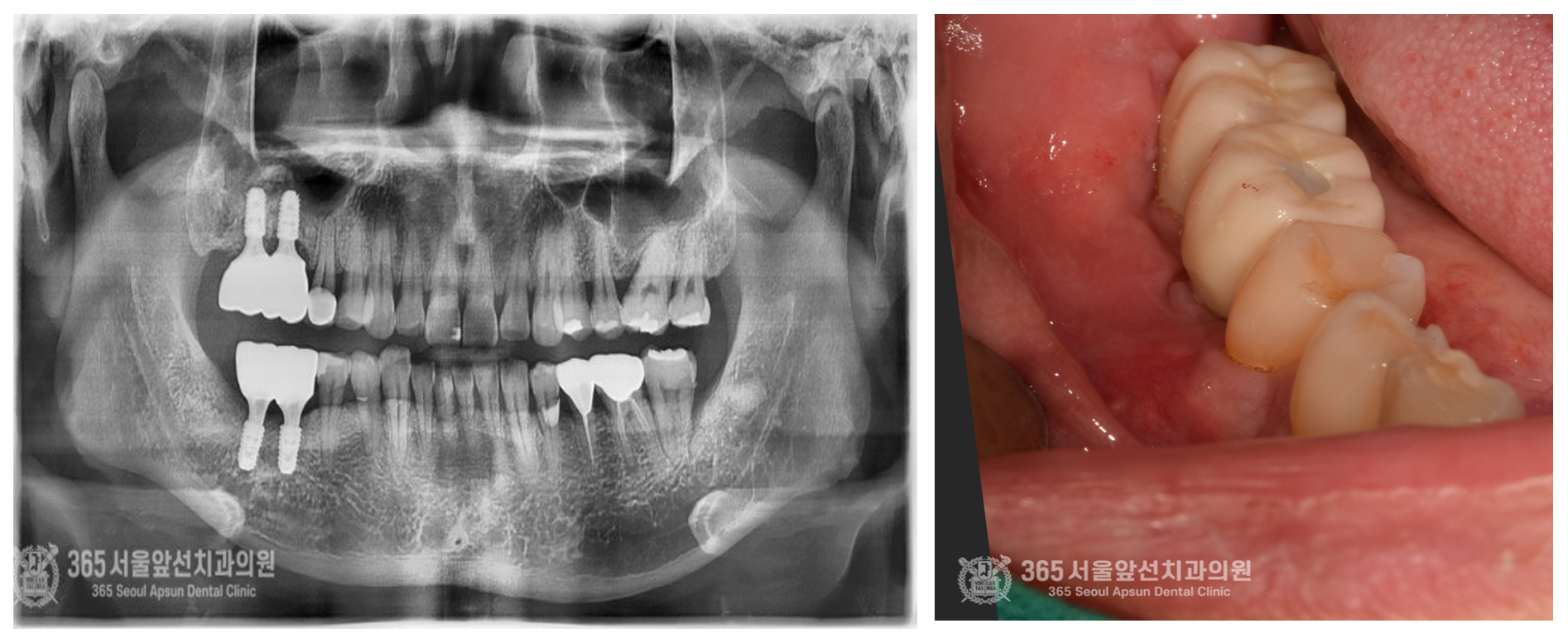 안녕하세요. 도화역치과 365서울앞선치과의원입니다. 오늘은 심하게 매복된 어금니 발치를 동반한 임플란트 치료증례를 살펴보겠습니다. 치아가 아주 심각하게 매복되어 있었던 치료증례 환자분입니다. 매복된 치아와 사랑니로 인해서 주변 잇몸이 망가지고, 충치가 심각할 정도로 진행되어 도저히 견딜 수가 없어서 집근처 치과에 내원하셨으나 높은 난이도로 인해 치료가 불가능하다는 판정을 받으시고 저희 병원에 오셨습니다.