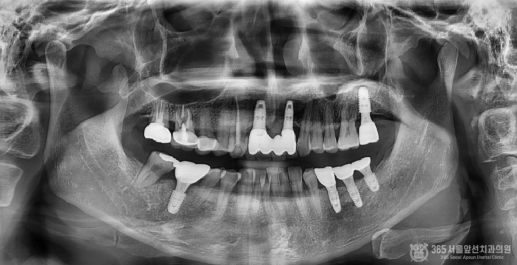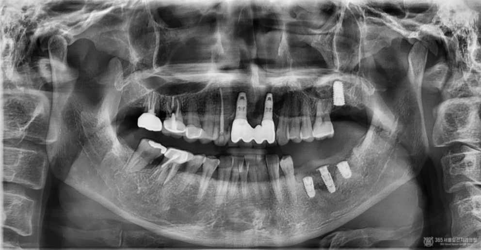 오늘 소개해드릴 간석동치과잘하는곳 365서울앞선치과의원 증례는 치료의 난이도도 높고 환자분께서 미국에 거주하고 계셔서 잦은 내원 및 유지관리가 어려운 경우였습니다. 미국에 계실때 현지 구강외과 의사를 만나서 상담을 받으셨던 경험이 있으시고 턱에서 골조직을 떼서 이식수술을 받으셔야 한다고 진단 받으셨던터라 수술에 대한 공포심이 매우 많으셨던 분이었습니다.