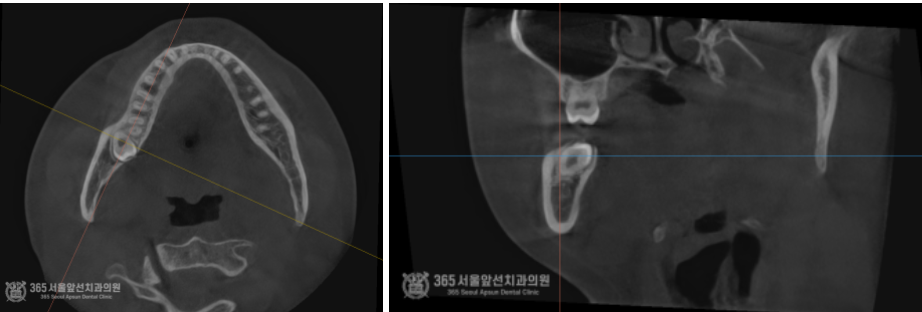 안녕하세요. 주안동치과 365서울앞선치과의원입니다. 하루에도 몇 건씩 사랑니가 불편하셔서 오시는 환자분들을 만나뵙고 있습니다. 환자분들께 치과에 대한 안좋은 기억을 여쭤보면 항상 빠지지않고 나오는 이야기가 바로 사랑니 발치인데요~ 그만큼 많은 환자분들께서 사랑니로 인해 불편감을 호소하고 계시고 발치도 많이 하고 가십니다. 하루에도 몇 건씩 발치를 하다보니 밥먹듯이 하는 진료가 되어버렸네요 ㅎㅎ 촬영일시 : 2024.06.25. 내원 당시 파노라마 엑스레이 사진 입니다. 간단한 사랑니 발치부터 완전 매복 사랑니까지 매일매일 다양한 사랑니 환자분들께서 찾아오십니다. 최근에 오셨던 환자분인신데요. 위와 아래 사랑니가 모두 매복된 형태를 보이고 있습니다. 매일매일 완전매복 사랑니 발치를 시행하고 있기에 매복 사랑니는 대수로운 문제가 아니지만 해당 환자분께서는 조금 특이한 양상이 있어서 포스팅을 하게 되었습니다. 사진 상 빨간색 동그라미 친 아래부분 사랑니의 경우 사랑니의 머리가 설측(혀쪽)으로 향하고 있는데요. 사랑니를 발치할때 기구 접근이 사랑니의 머리쪽으로 이루어져야 하므로, 사랑니 머리가 협측(볼쪽)으로 나와있는 것이 발치에 유리합니다. 즉, 해당 환자분은 사랑니발치 난이도가 꽤 높은 편 에 해당하는 특이한 형태였습니다. 촬영일시 : 2024.06.25. 내원 당시 CT 사진 : 아래쪽 사랑니가 뼈에 거의 묻혀있고 사랑니의 머리가 혀쪽으로 기울어져있는 것이 보입니다. 쉽지 않아보이네요. 촬영일시 : 2024.06.25. 여러 각도에서 CT 분석을 시행합니다. 비록 난이도가 높은 사랑니 발치에 해당했으나, 위아래 사랑니 모두 발치하는 것부터 봉합하는데 걸린 시간까지 총 12분이 걸렸고 환자분께서는 빠르고 정확한 발치에 만족하시며 귀가하셨습니다 ^^ (지혈 거즈를 물고 계셔서 비록 말씀은 못하셨으나 왼쪽 손으로 엄지척 해주셔서 뿌듯했습니다 ㅎㅎ) 촬영일시 : 2024.06.25. 안전하게 발치가 완료된 파노라마 엑스레이 사진입니다. 매일 사랑니 발치와 관련하여 다양한 환자분들을 만나뵙고 있는데요. 환자분들의 고통을 해결해드리고, 치료에 만족하시는 모습을 볼때마다 치과의사로서의 삶에 하루하루 뿌듯함을 느낍니다. 지금까지 365일 열린 가까운 서울대학교 치과병원을 지향하는 365서울앞선치과였습니다. 감사합니다. [ 치료기간: 2024년 6월25일 ] ※ 365서울앞선치과의원의 모든 포스팅은 각 진료과 의료진이 직접 작성합니다. 365서울앞선치과의원 블로그의 임상 케이스 게시물은 환자분께 의학적으로 정확하고 상세한 정보를 드리기 위해 각 진료과 의료진이 직접 작성하며, 모든 증례 사진은 본원 의료진이 직접 시술한 증례를 촬영한 것으로, 의료법 제23조, 제56조에 의거하며 환자분의 동의를 얻어 포스팅에 사용하였습니다. 또한 해당 케이스는 본 환자분의 치료 결과이며, 환자 상태에 따라 치료의 결과는 달라질 수 있습니다. |